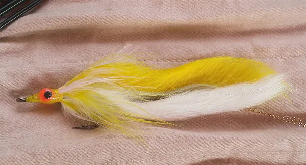 Brightly colored Bunny Split pike fly with large rabbit zonker strips