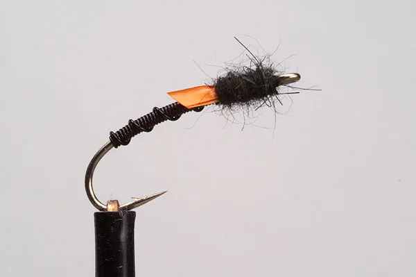 The Darth Vader Nymph tied in the slim buzzer style with an openly wound rib