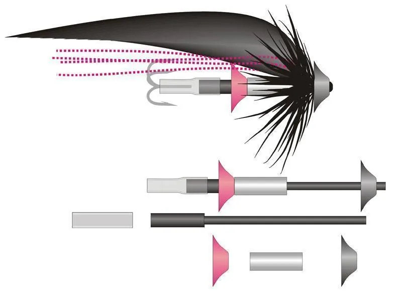 By adding both a wide rear and a wide front cone a lot of turbulence is created along the fly. You can even reverse the rear disc to create a "brake" on the fly. Here shown on a Pro Flyfisher Flexitube
