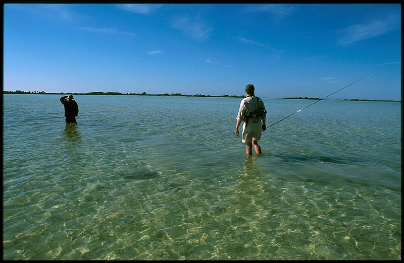 The guide usually goes in front to spot fish before you do. Thanks to our height and sunglasses we often saw the fish before the guide.
