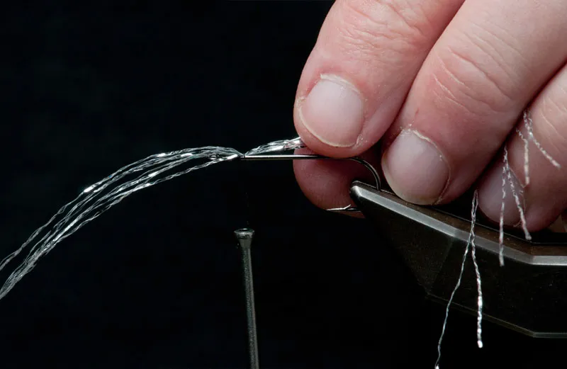 Tie in the flash in the middle of the straws behind the hook eye leaving space for the head