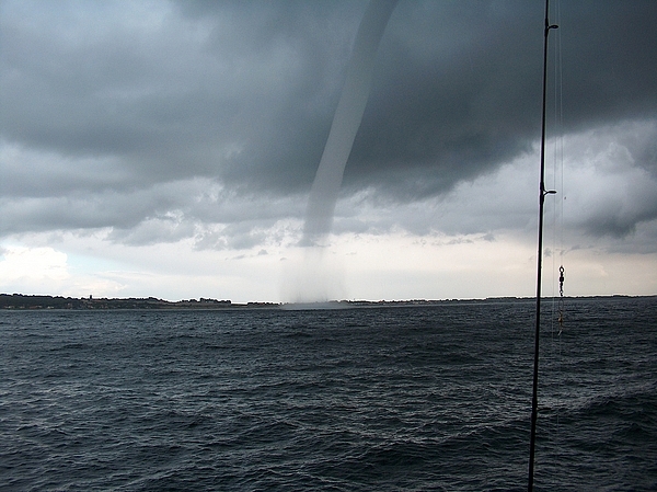 On a boat trip after mackerel, we ran into this nasty weather and saw several small tornadoes over the sea. I starting to shoot pictures of it, and later that day I sent it to the lokal tv and they showed it in the news.