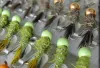 A few early samples of Danish fly tyer Ken Bonde Larsen's cone head flies. |